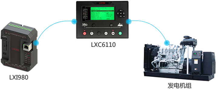 泰安伊萬(wàn)福發(fā)電機(jī)廠家使用LXI980數(shù)據(jù)采集器連接各種品牌的發(fā)電機(jī)控制器,再連接發(fā)電機(jī)組。如圖所示:、