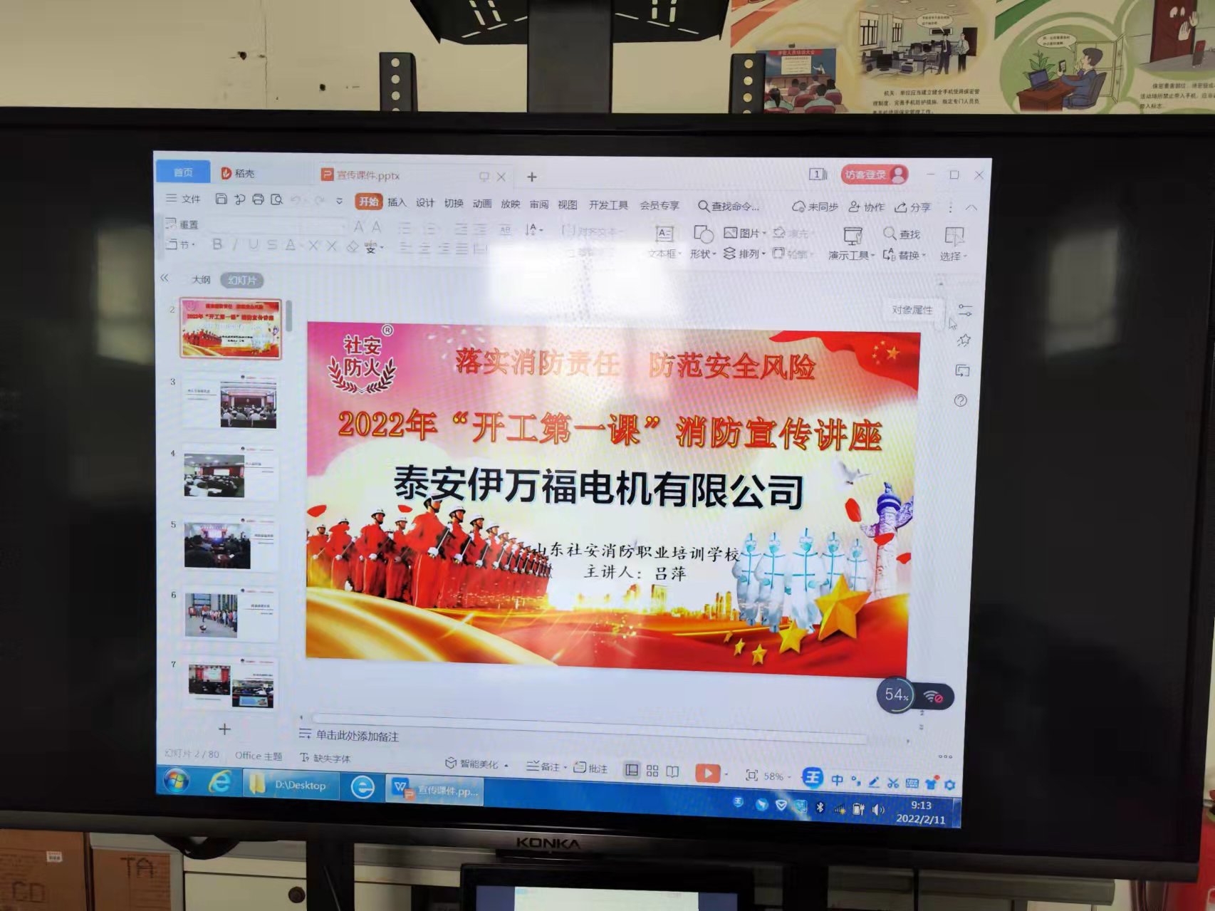 2022年 2月11日,泰安伊萬福發(fā)電機公司開展了2022年“開工第一課”消防宣傳講座,山東社安消防職業(yè)培訓學校呂老師以生動的方式講敘了多種情況下的火災現場及其滅火方法等,不但掌握了一些消防安全工作的基本理論知識,還給我們的生活習慣帶來了一點提醒。